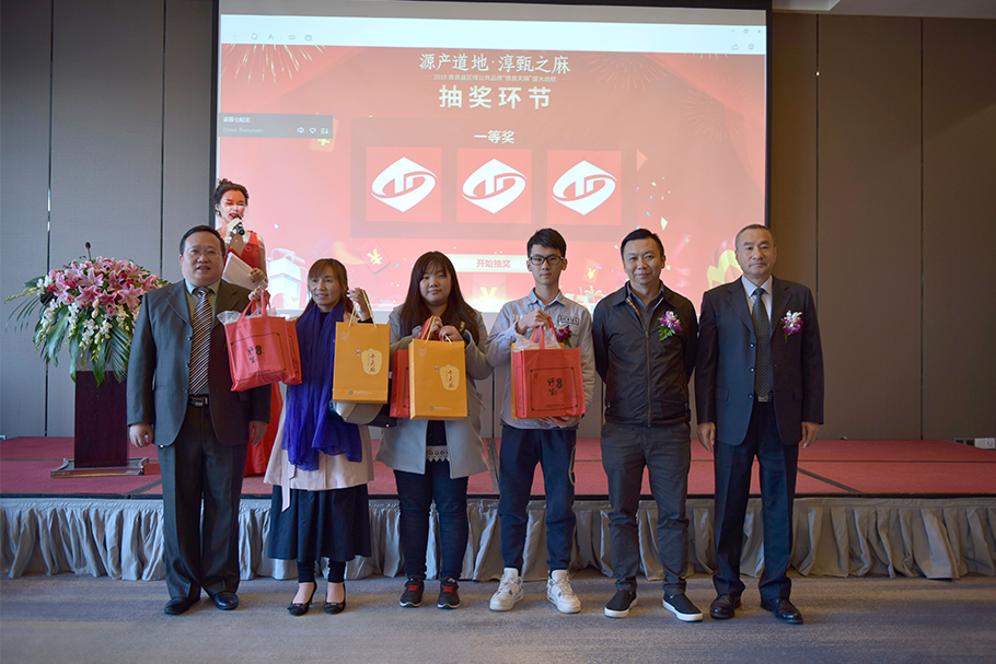 省商務(wù)廳、彝良縣領(lǐng)導(dǎo)共同給一等獎(jiǎng)獲得者頒發(fā)獎(jiǎng)品