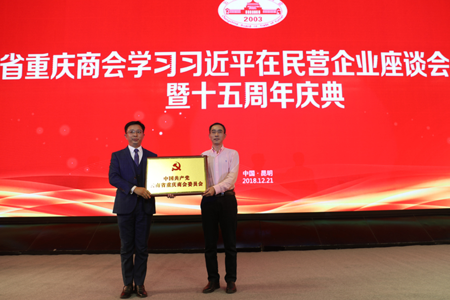 云南省工商聯(lián)黨組成員、副主席夏云東同志在會上宣讀了《關(guān)于批準成立中國共產(chǎn)黨云南省重慶商會委員會的批復》,并向云南省重慶商會首任黨委書記高柱明同志授牌。