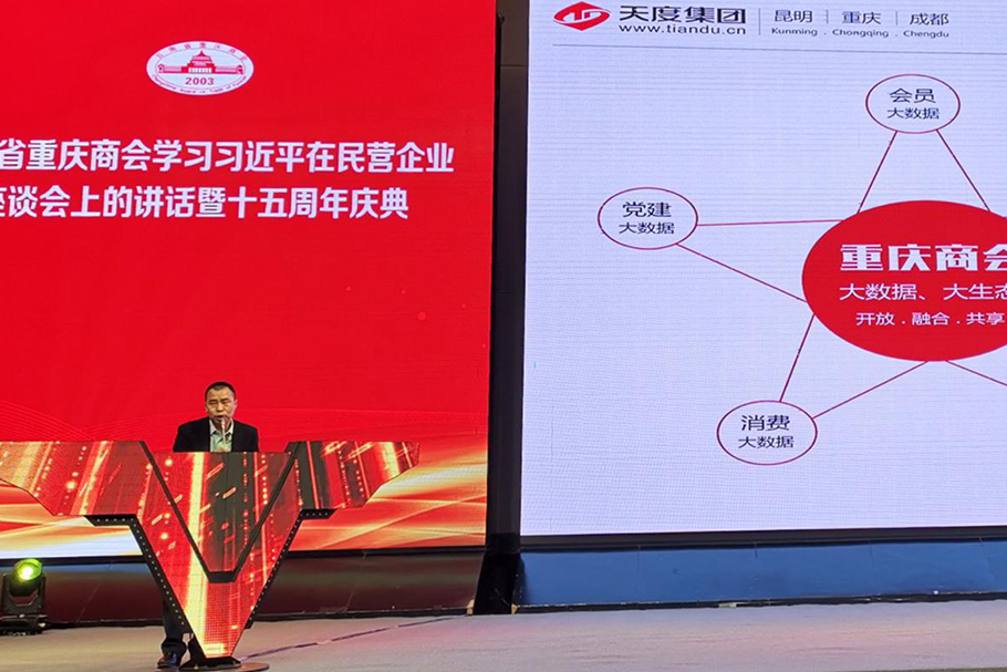 2018年12月21日下午,云南省重慶商會在云安會都國際會議中心隆重舉行主題為《云南省重慶商會學習習近平總書記在民營企業(yè)座談會上的講話暨十五周年》活動,云南省人民政府副省長王顯剛,云南省政協(xié)副主席、省工商聯(lián)主席喻頂成等領(lǐng)導出席了會議,天度集團董事長鄭桂文現(xiàn)場對“商會大數(shù)據(jù)”建設(shè)情況進行介紹并出席了大數(shù)據(jù)平臺啟動儀式。