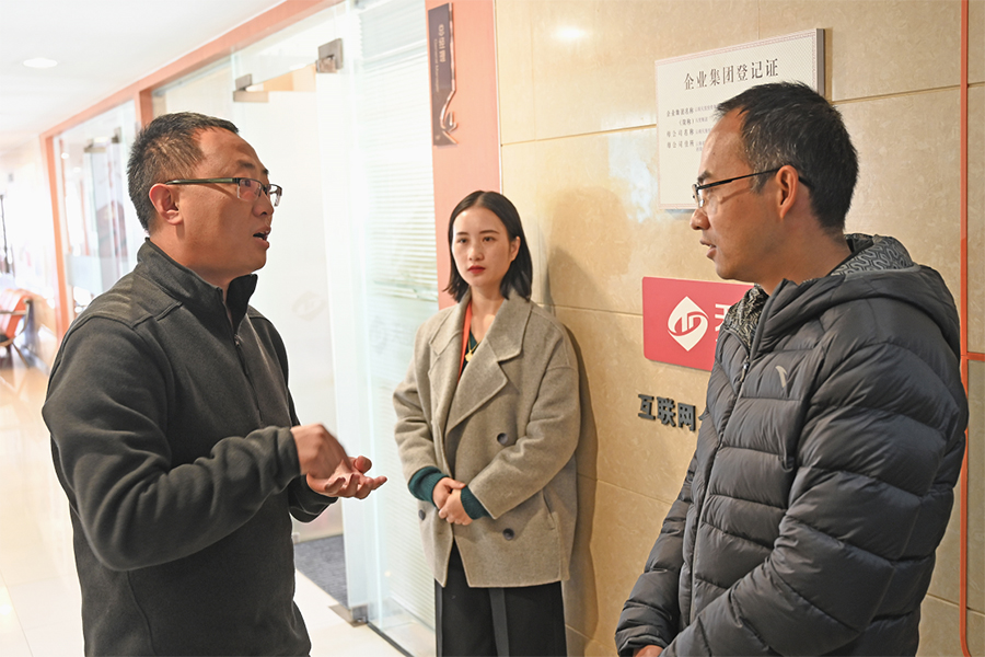 陳凈等一行領(lǐng)導(dǎo)主要調(diào)研了天度集團(tuán)在數(shù)字經(jīng)濟(jì)領(lǐng)域的發(fā)展建設(shè)情況,集團(tuán)相關(guān)負(fù)責(zé)人作了深入的講解和匯報(bào)交流工作。
