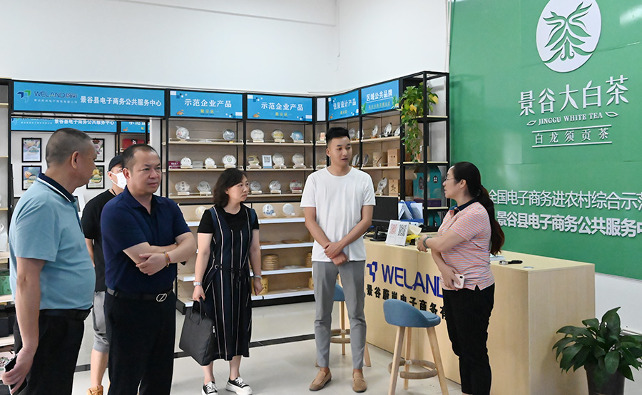 普洱市委組織部副部長曹剛,景谷縣委常委、組織部長尚正姝娜等領(lǐng)導(dǎo)來到景谷縣電子商務(wù)公共服務(wù)中心、景谷蔚嵐電子商務(wù)有限公司調(diào)研指導(dǎo)